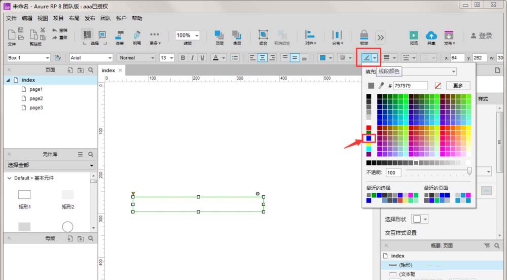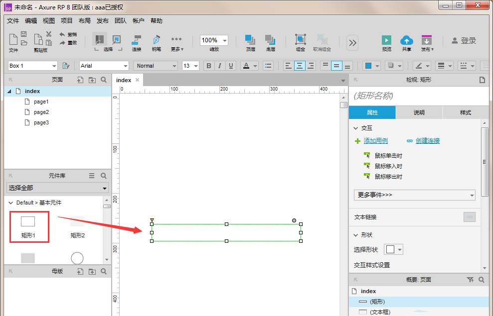 3、文本框隐藏之后,再从元件库中向面板中拖入一个带有边框的矩形