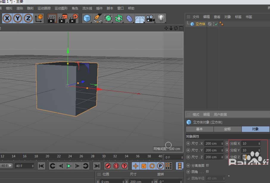 1、新建对象-立方体,并增加立方体的分段;