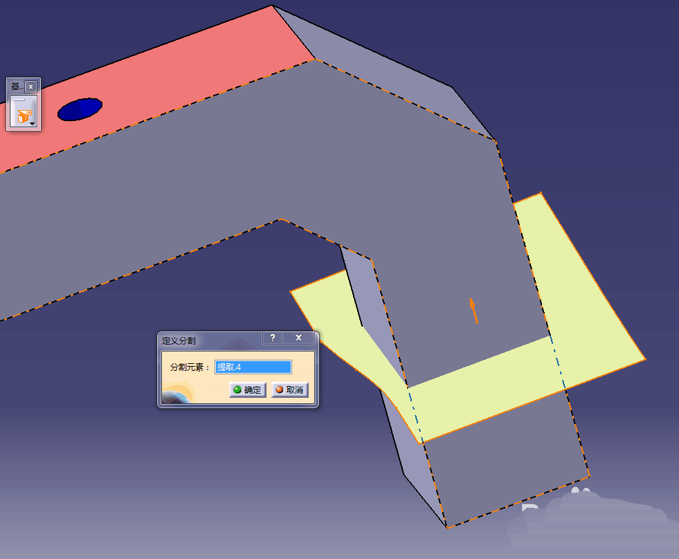 CATIA设计零件的时候,想要切割曲面是与零件相交的面,分为两种情况,一种是曲面完全穿过零件实体,另一种则比较复杂,需要先把曲面延伸到能完全穿过零件才能进行切割,下面我们就来看看这两种情况的解决办法。