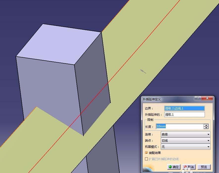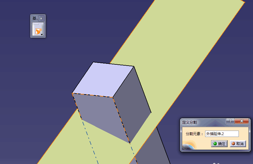 如果遇到没有完全穿过零件实体的情况又该怎么办呢?这时候就要用到工具栏“操作”中的“外插延伸”命令了。