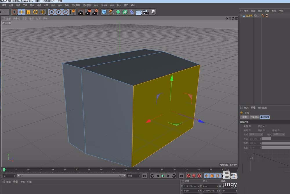 1、打开C4D软件,我使用的版本是R18,在工作区建立一个立方体,调整合适的大小。