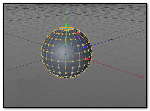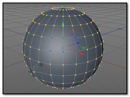 3、初学C4D的朋友可能会按住SHIFT键,用实时选择工具,把其余的点一个一个的点选;也有可能有些朋友会用框选工具把整个球体的点全选中后,再按CTRL键,把这六个点取消选中。