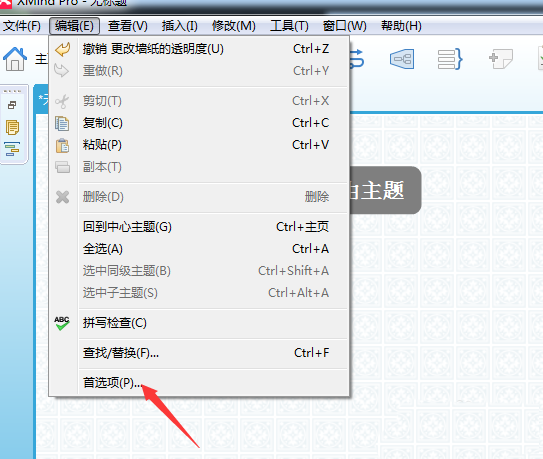 1、进行打开一个xmind的软甲的界面中,进行点击菜单中“”编辑“”的选项