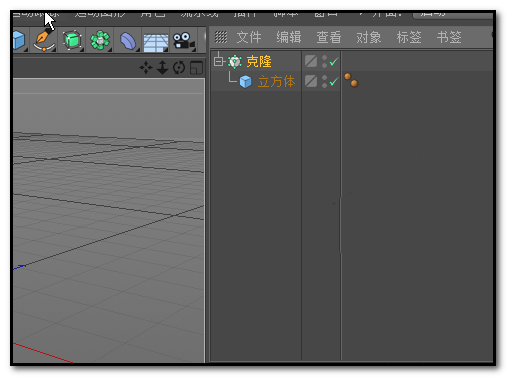3、按住ALT键,再点:克隆;使到成“立方体”成为“克隆”的子级。
