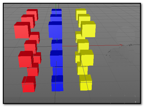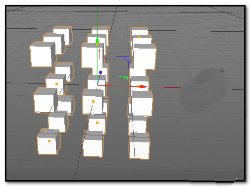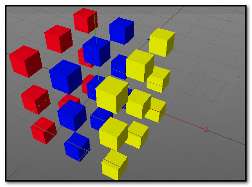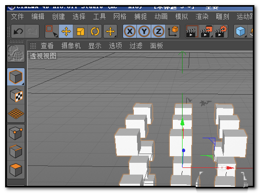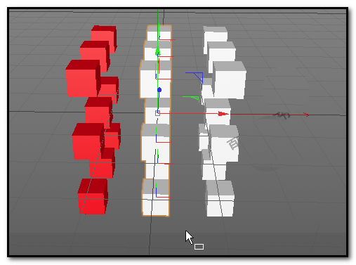 5、我们可以看到,本来一个立方体的,现在因为使用了克隆,立方体现在已变成了27个,这是默认的,想要增加或减少立方体数量,可以在属性在面板的数量中修改。在这里,我们不改数量, 我们就这样操作,把这些立方体分别添加不同的材质。