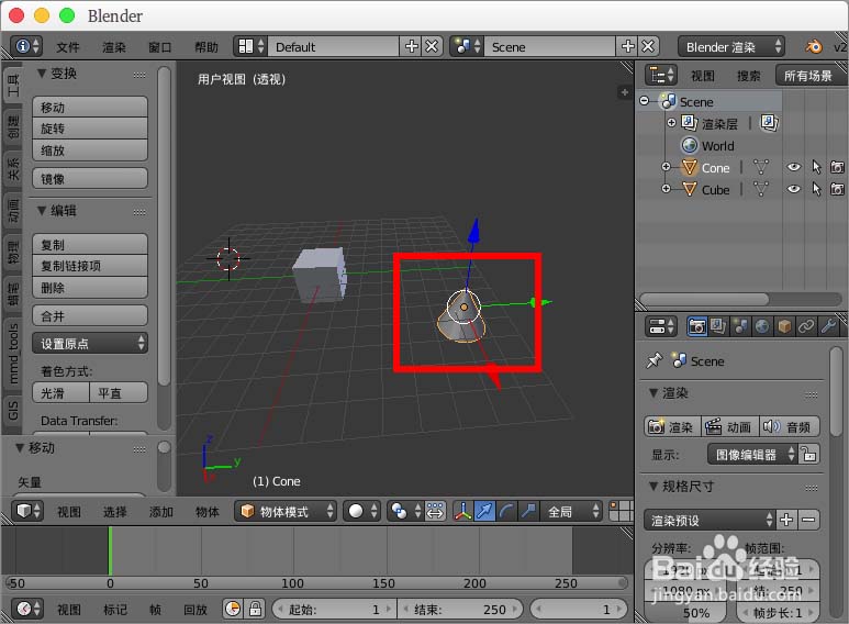 2、在场景里还有一个“椎体”,我们要把立方体精确的移动到椎体位置。