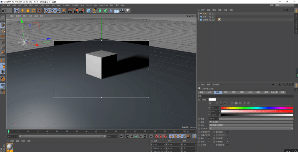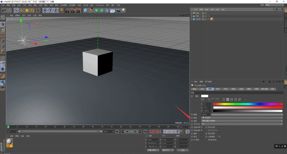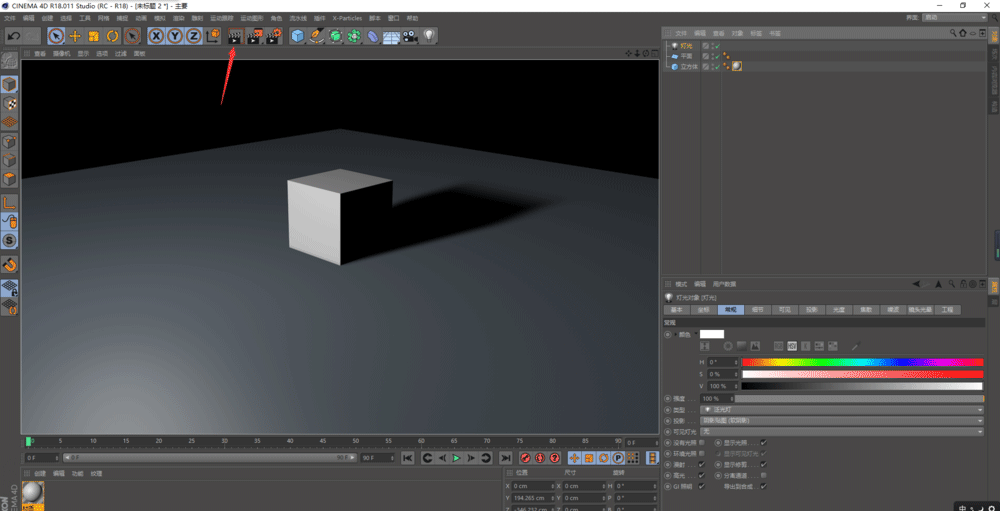1、新建以下场景,并将灯光的软影调出来;