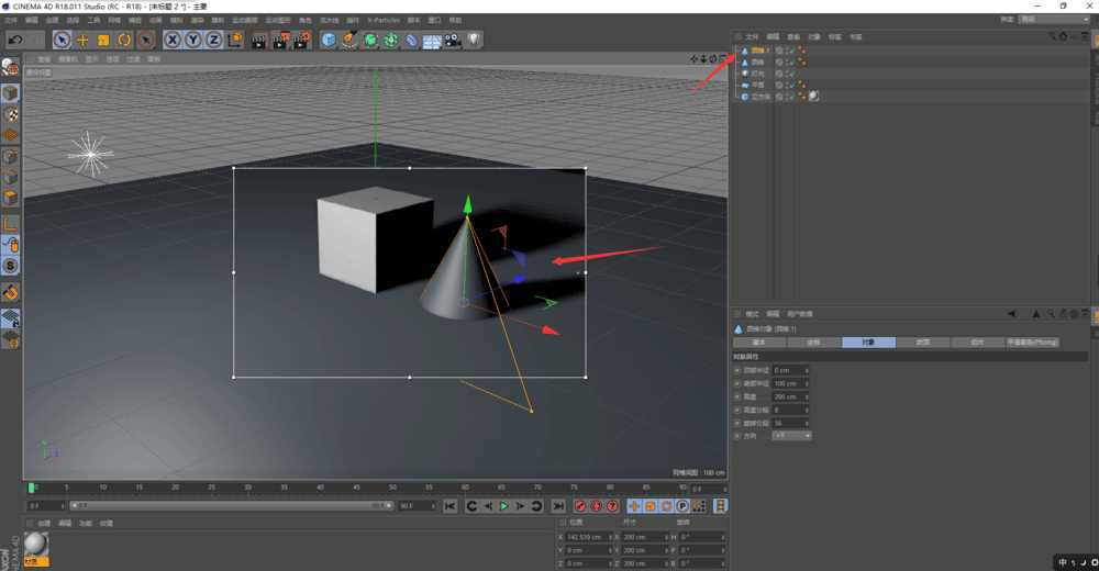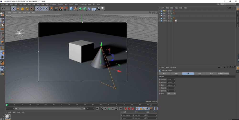 5、添加一个圆锥对象,随时更换添加渲染对象;