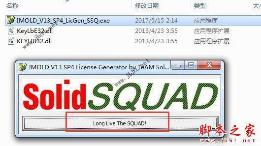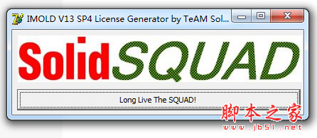 8、安装完成后,将破解补丁复制到SolidWorks软件的“Plugins”目录下,然后运行“IMOLD_v13_SP4_LicGen_SSQ.exe” 点击中间的按钮“Long Live the SQUAD!”,然后出现"all done!" and click OK即可破解成功。