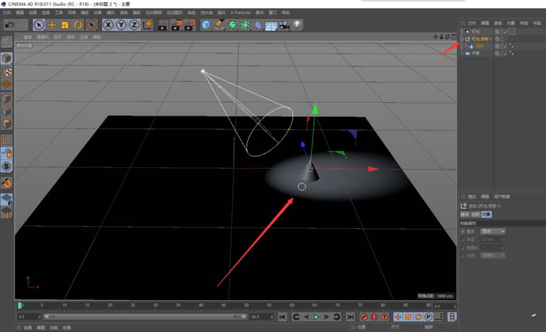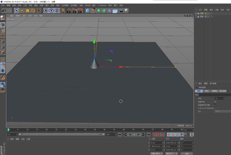 1、新建下列场景:包含圆锥对象和平面;