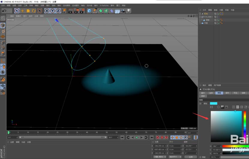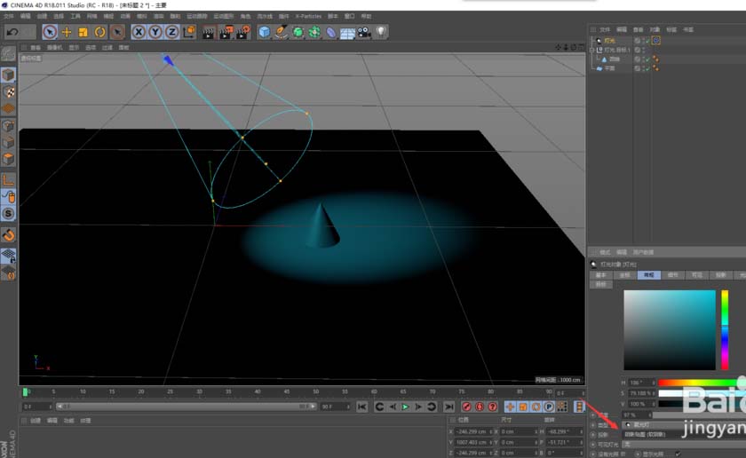 C4D怎么给球体打聚光灯?