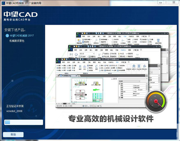 6.由于该软件安装程序较大,所以安装需要些许时间,请用户耐心等待,片刻后即可享用中望cad2017机械版。