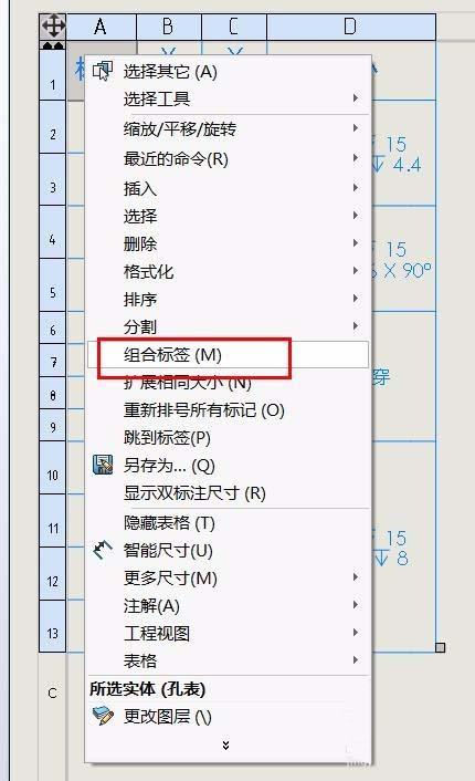 2、注释中选择表格/孔表