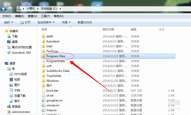 3、打开你的软件安装所在的目录(我的是在C盘上的)双击文件夹program files