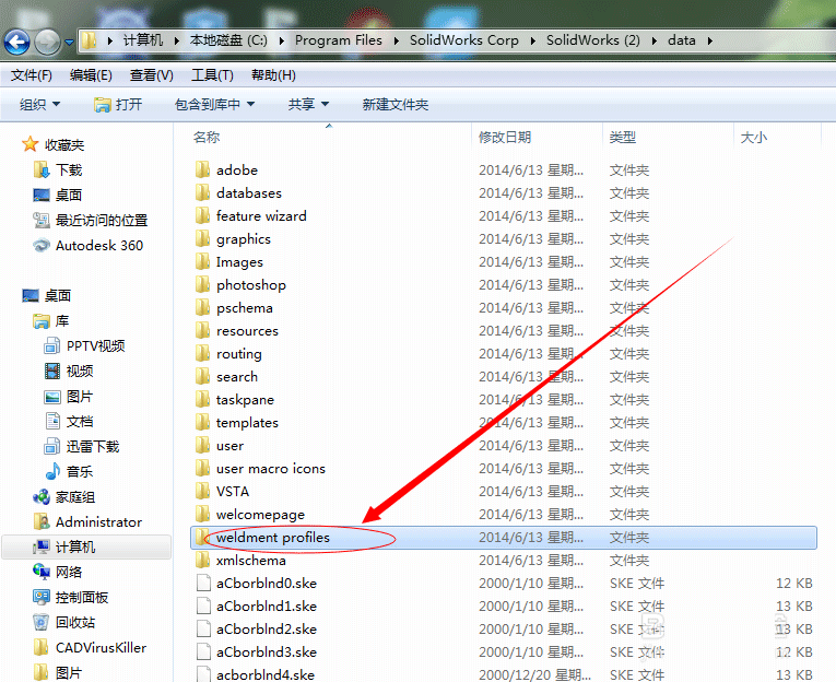 7、双击文件夹weldment profiles