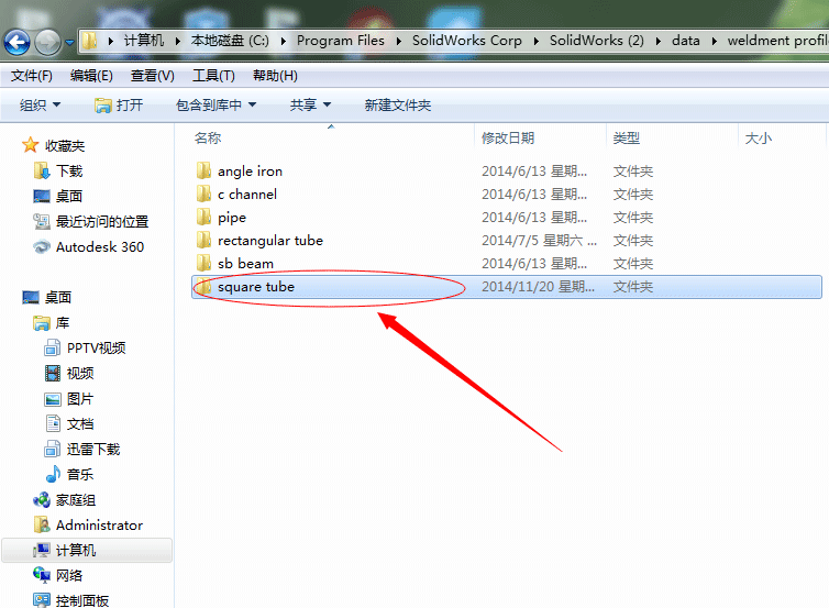 进入到:\progam files\solidworks\data\weldment profiles文件夹,将里面已有的文件拖进solidworks工作窗口(即用solidworks打开),会看到标准件的截面草图,编辑草图,修改草图的尺寸信息,就可以改成你要的规格型号,另存为(例如40*3的方管 “40*3”)即可。