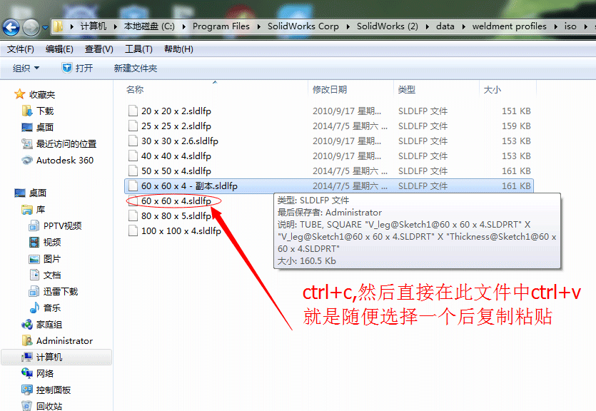 10、这时候你会发现文件夹中有一些系统已经设置好的矩形管的尺寸,也就是我们之前在步骤1所看到那些。随便选择一个文件复制,然后粘贴。