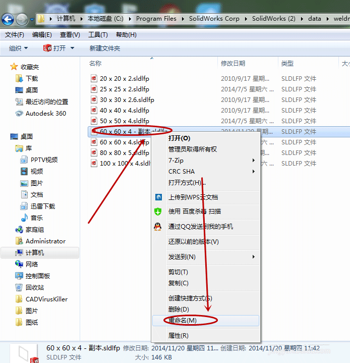 13、右击刚才更改的文件,重命名为70X70X4.5