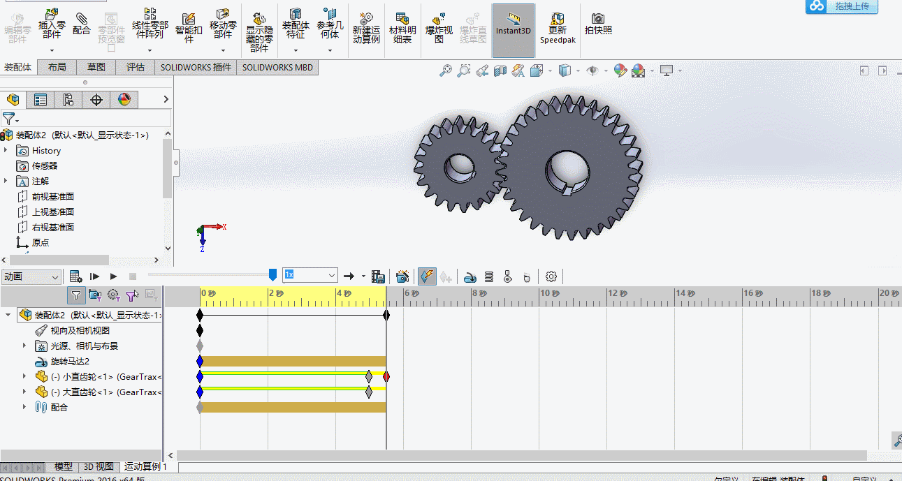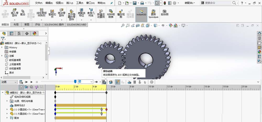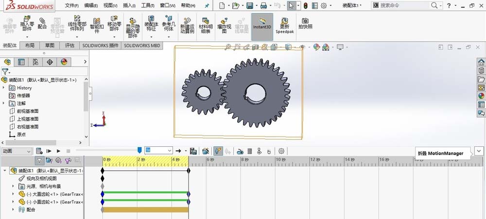 在做齿轮啮合动画之前,大小齿轮之间的正确装配是非常重要的。添加必要的配合,实现齿轮间的正确装配,是完成齿轮啮合动画的前提,今天我们就来看看SolidWorks齿轮啮合动画的制作方法。