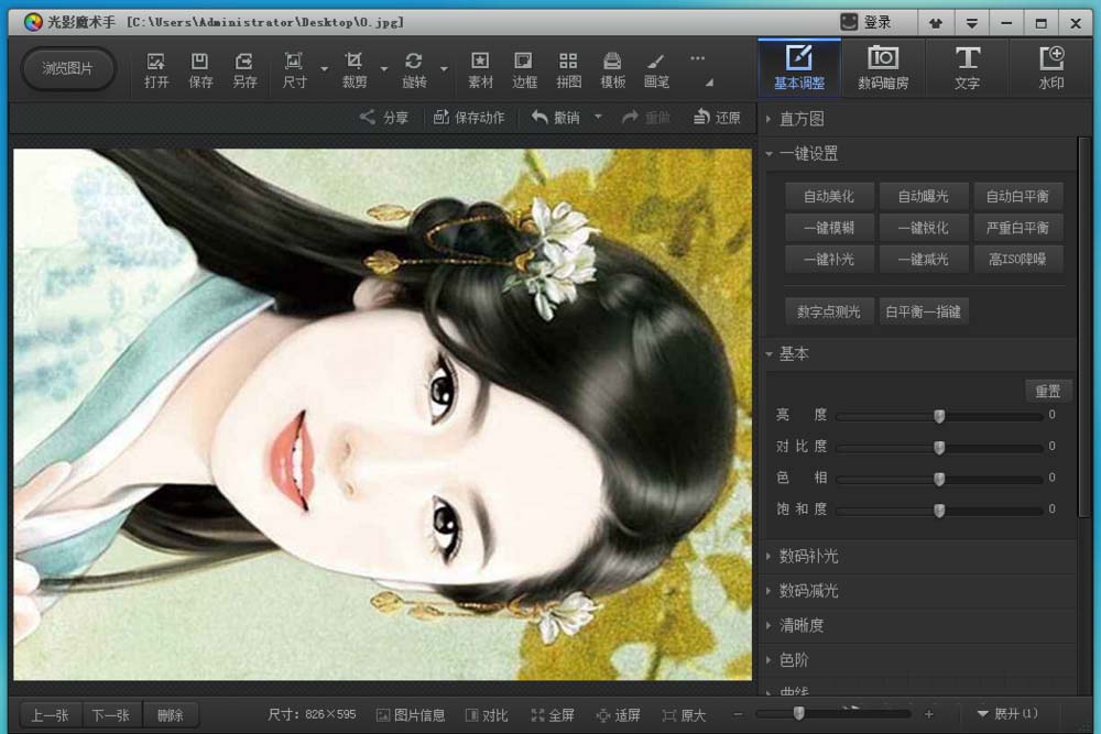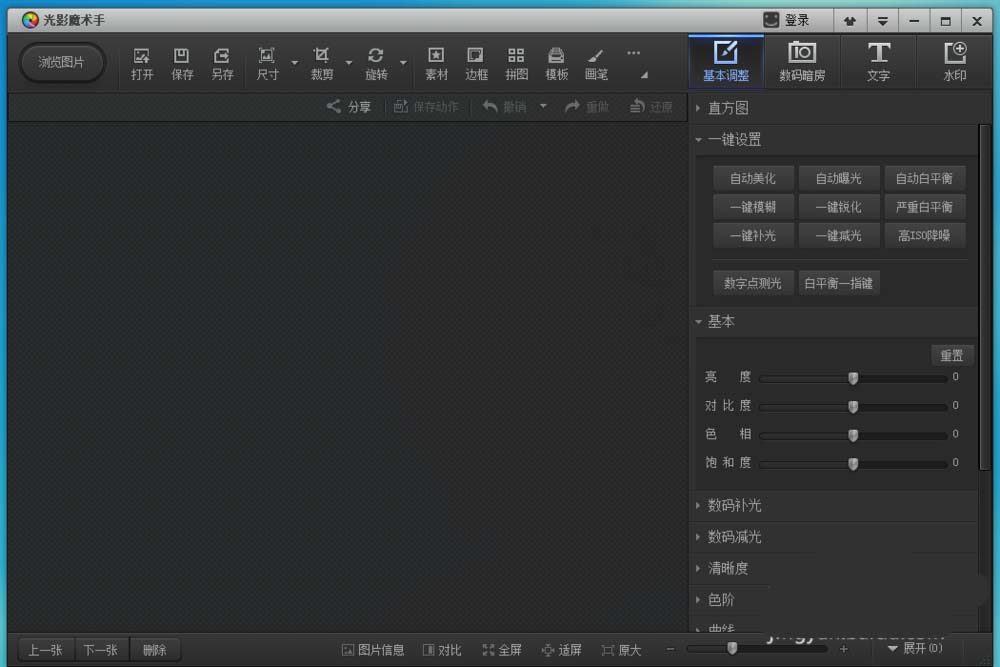 1、首先我们在桌面上双击光影魔术手的快捷图标,打开光影魔术手这款软件,进入到光影魔术手的操作界面如图所示:
