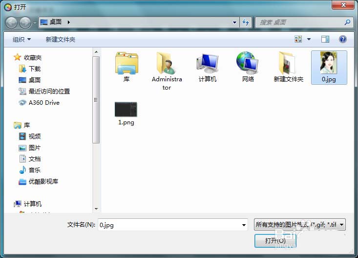 2、打开光影魔术手之后,在空白处双击鼠标左键弹出打开对话框,再打开的对话框内找到我们需要旋转的图片,如图所示:
