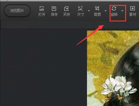 3、打开图片之后,在菜单里找到旋转选项,如图所示: