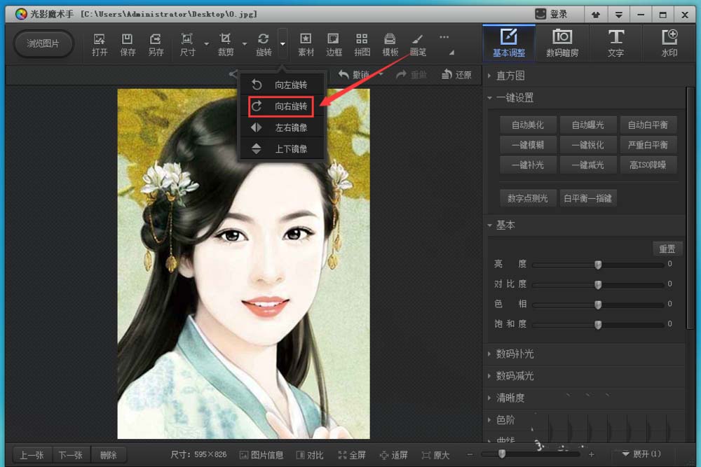 7、点击向右旋转,可以看到我们的图片就向右进行了旋转,如图所示: