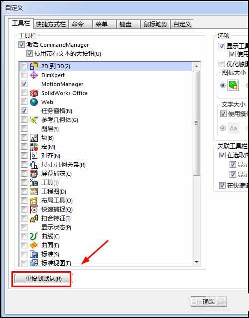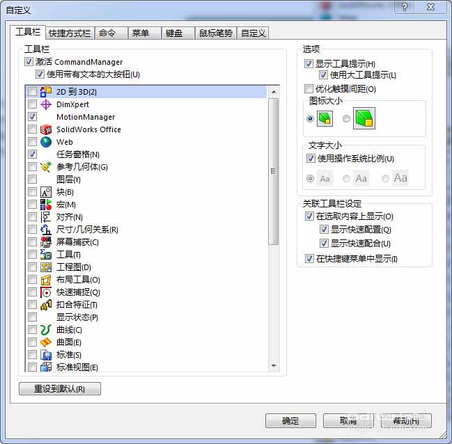 solidworks恢复默认工具条的教程,希望大家喜欢,请继续关注脚本之家。