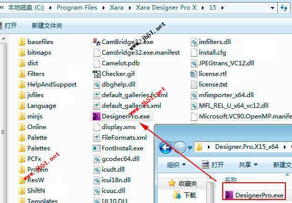 1、下载解压,得到32位和64位Xara Designer Pro X15原程序和破解文件,小编以安装64位为例;