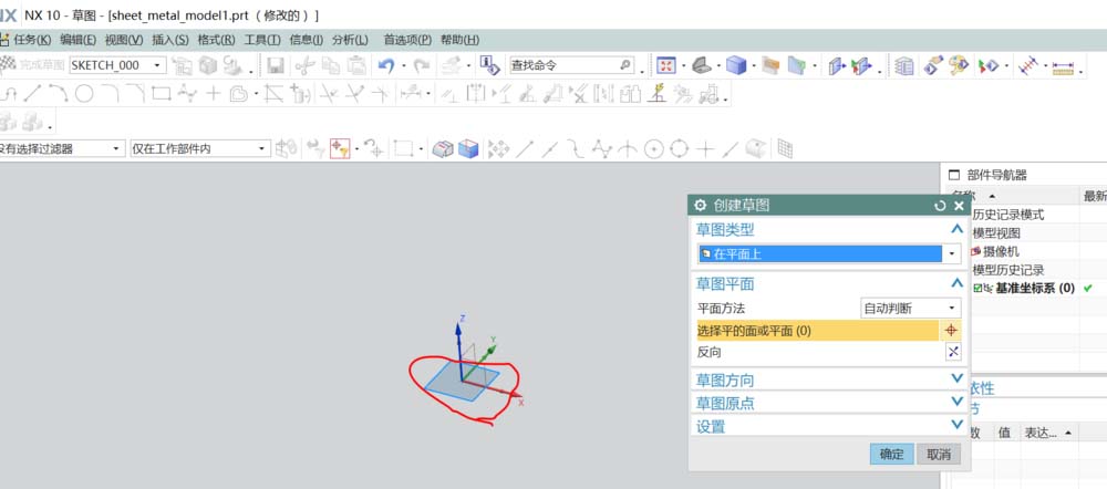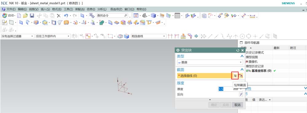 2、在弹出的对话框中选择,绘制截面线。选好绘制平面进入草绘,绘制突出块的截面线。