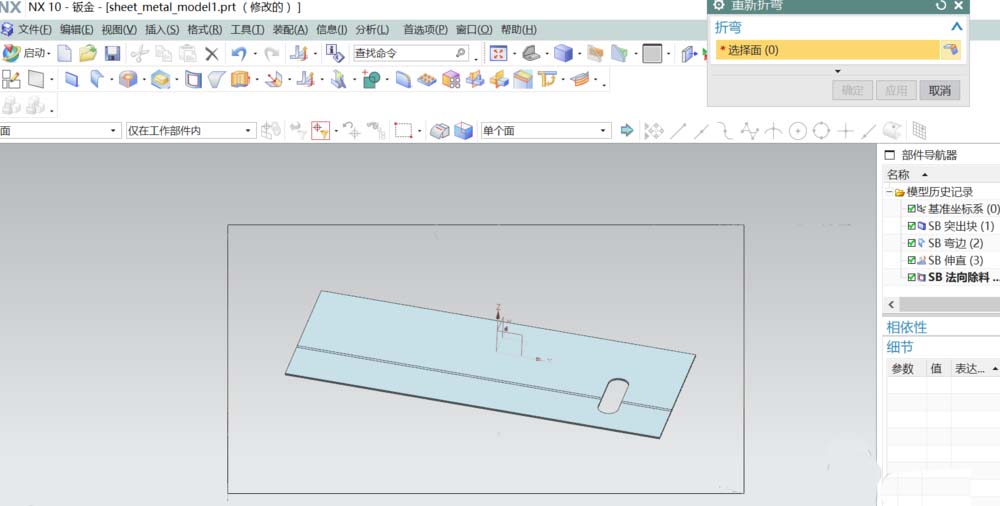 7、选择重新折弯命令,只要框选整个模型系统会自动找到要之前的折弯面。得到最终效果。是不是很简单?但是如果这用建模模式来做的话,可会比较麻烦点哦。