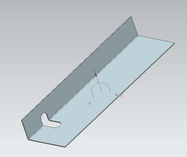 6、在展开的面上进行法向除料操作;以展开面为平面草绘法向除去料的截面线;确定后得到开槽效果。