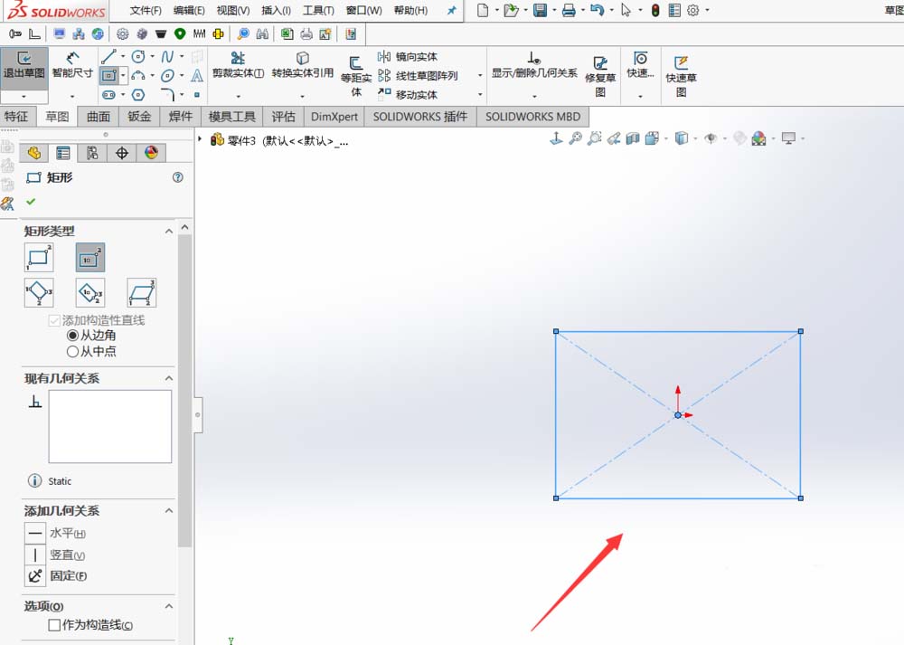 3、然后选择草图命令绘制新的草图。之后选择特征里面的命令将草图转换为三维模型。