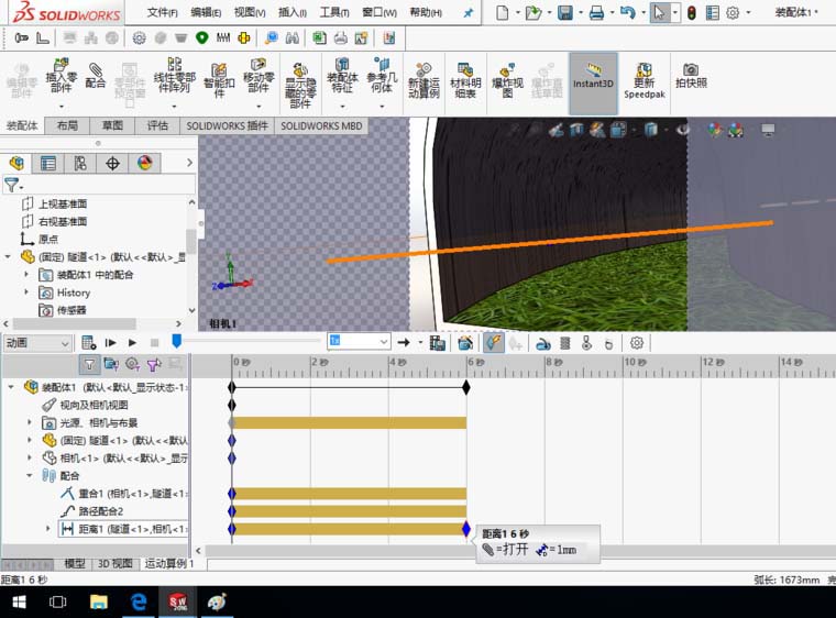 8、隐藏相机零件和草图,切换到运动算例1界面。
