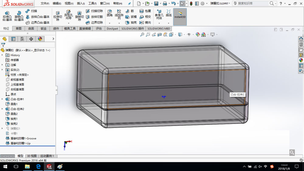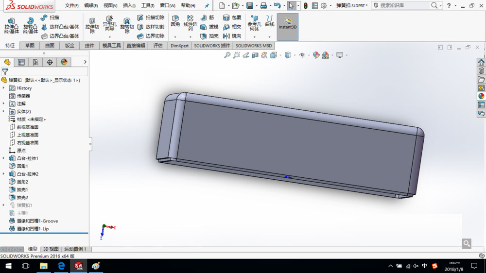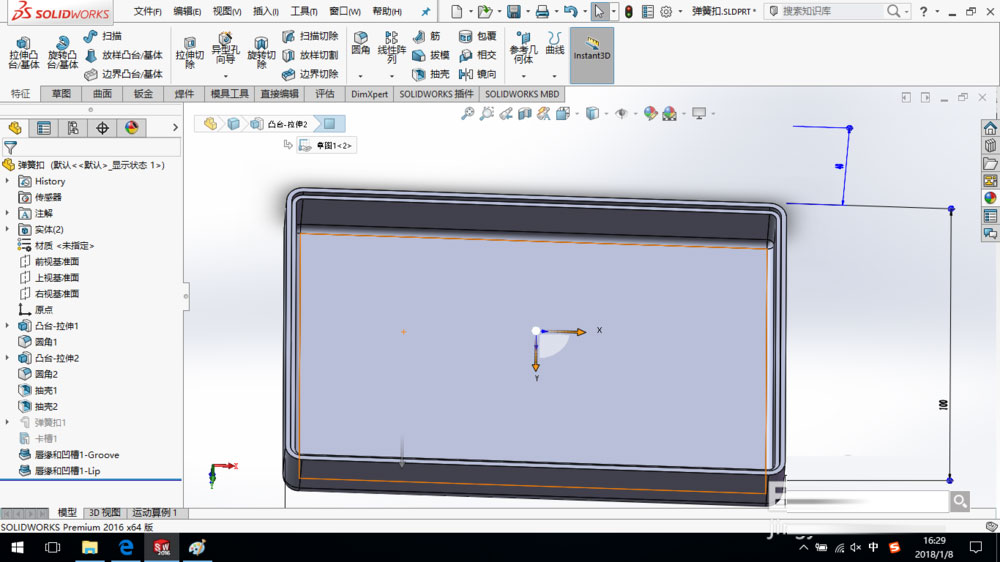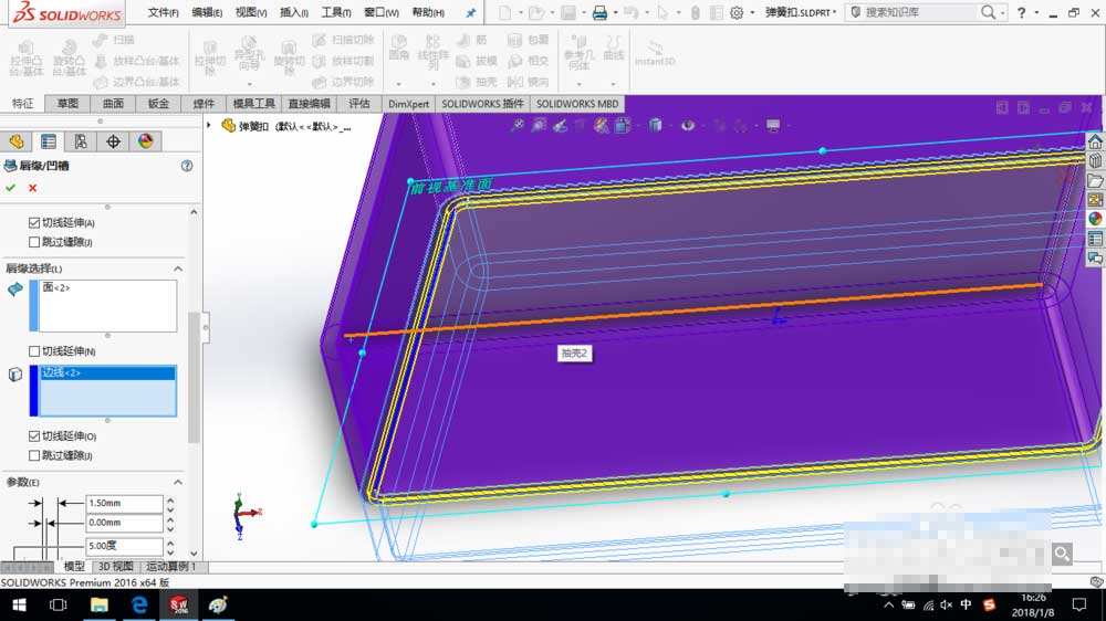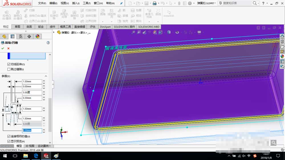 SolidWorks2016创建唇缘凹槽教程: