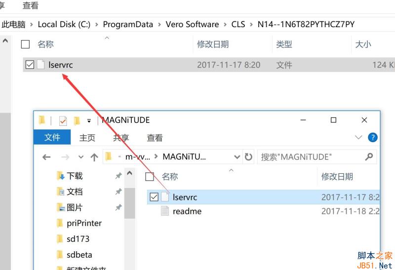 15、将压缩包里面MAGNiTUDE文件打开,复制lservrc文件到C:\ProgramData\Vero Software\CLS\N14--1N6T82PYTHCZ7PY目录