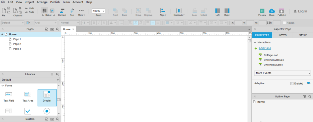 1、首先,打开Axure RP 8设计原型工具,找到设计控件,拖曳一个到画布上,如下图所示: