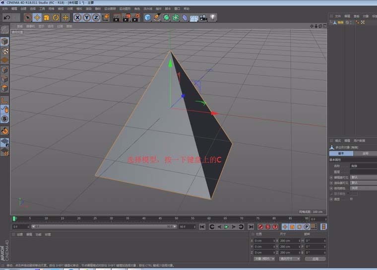 2、选择模型,并按一下键盘上的C,切换至可编辑状态。