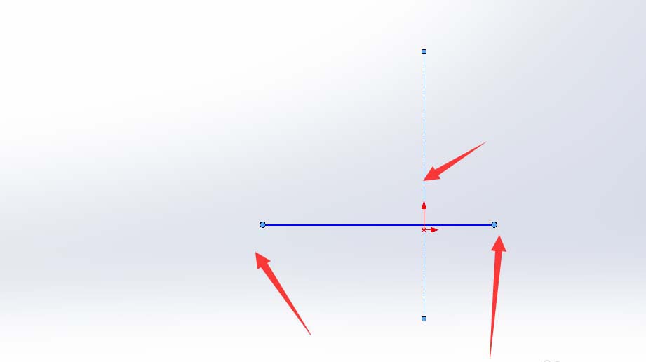 5、然后我们要选中直线的两个端点,之后在选中中心线。