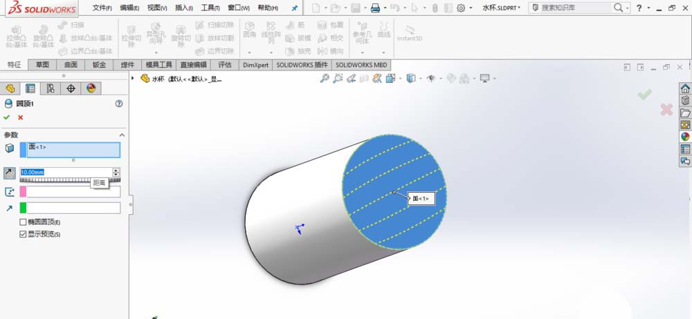 2、创建圆顶特征,如图所示。