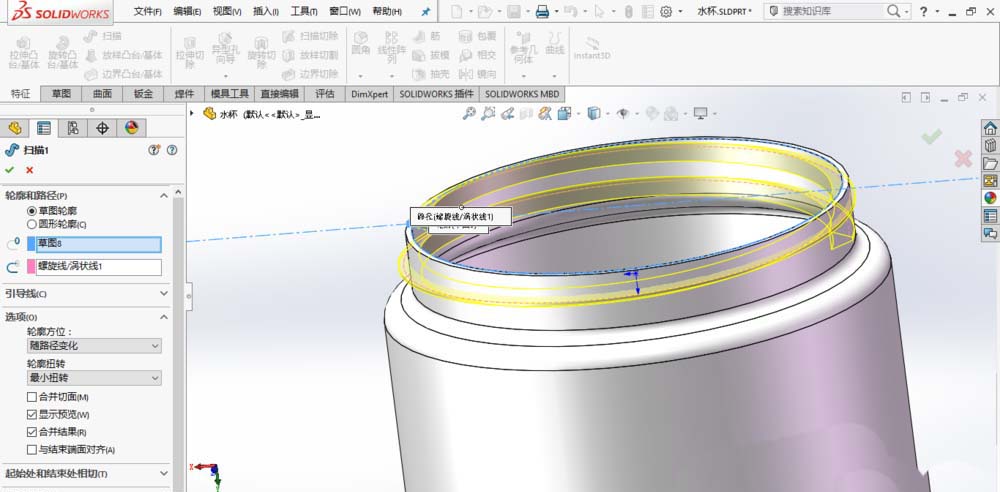 以上就是SolidWorks中建模保温杯的教程,希望大家喜欢,请继续关注脚本之家。
