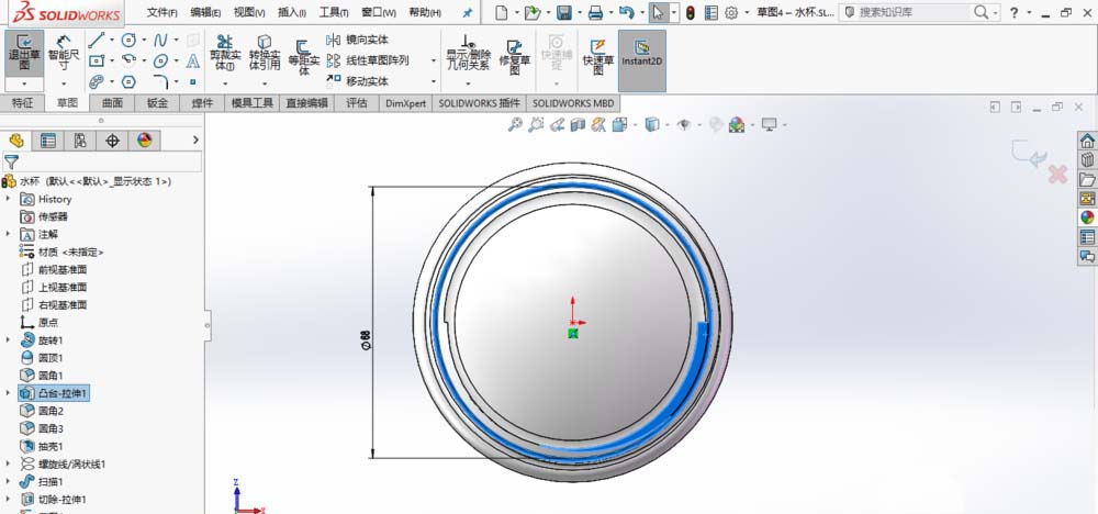 SolidWorks中想要创建一个保温杯,该怎么创建呢?下面我们就来看看详细的教程。