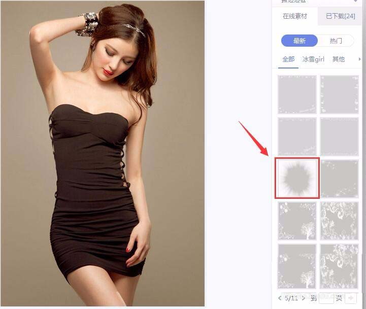 7、点击撕边边框选项,进入撕边边框工作模式,在右侧找到我们需要的动感边框,如图所示: