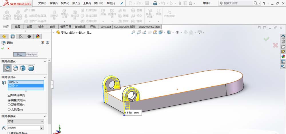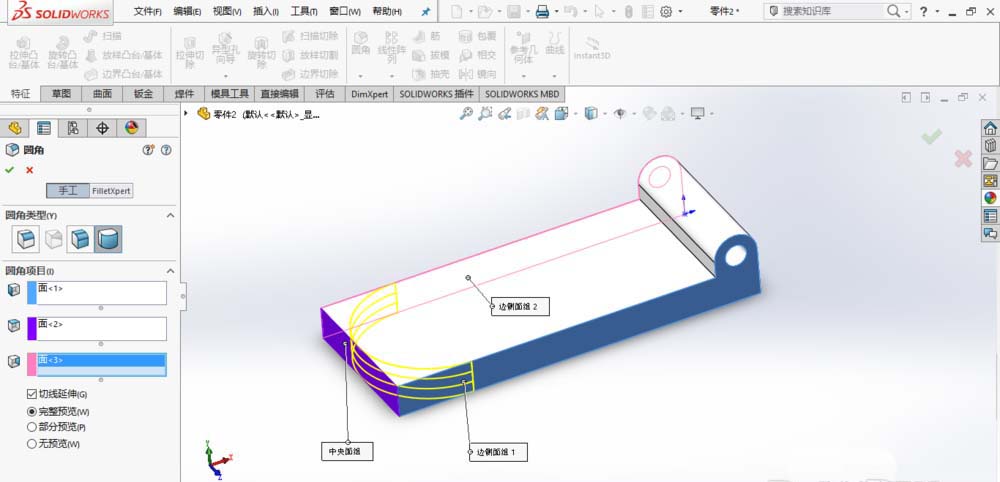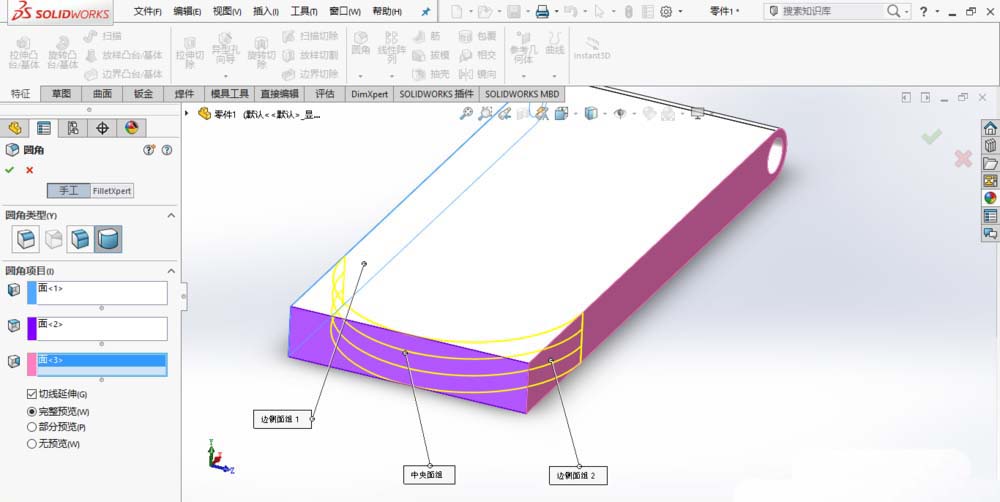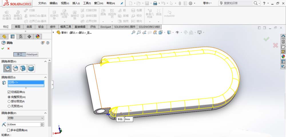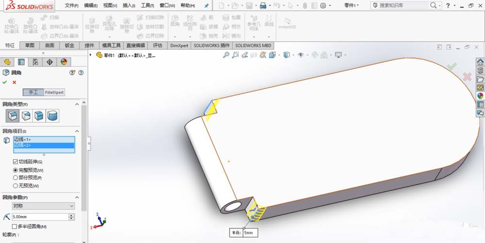 2、创建完整圆角,如图所示。