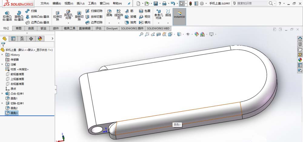 5、至此,完成手机上盖的创建,保存模型。
