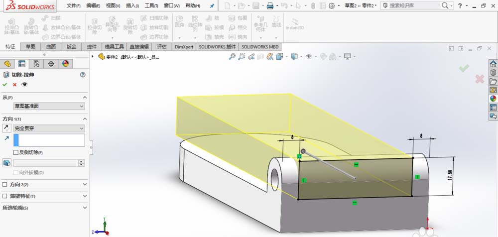 3、创建切除-拉伸1,如图所示。