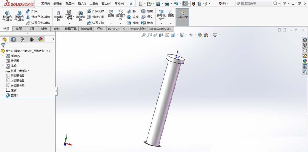 2、完成销轴的创建,保存模型。