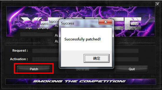 10、运行注册机,点击“Patch”,提示补丁打入成功