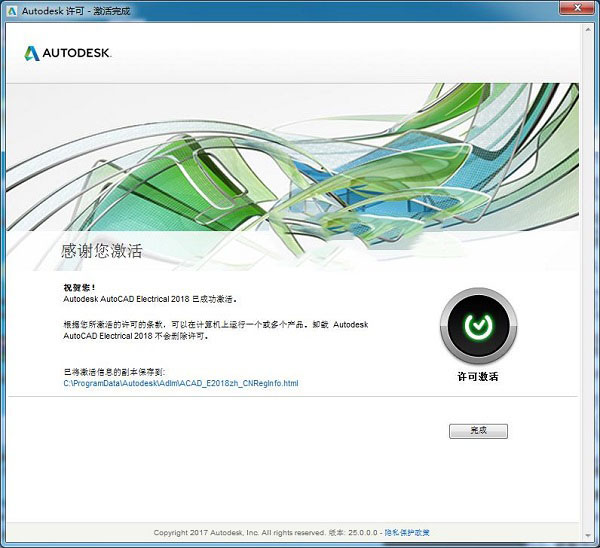 13、破解完成,现在用户可完全免费的使用AutoCAD Electrical 2018