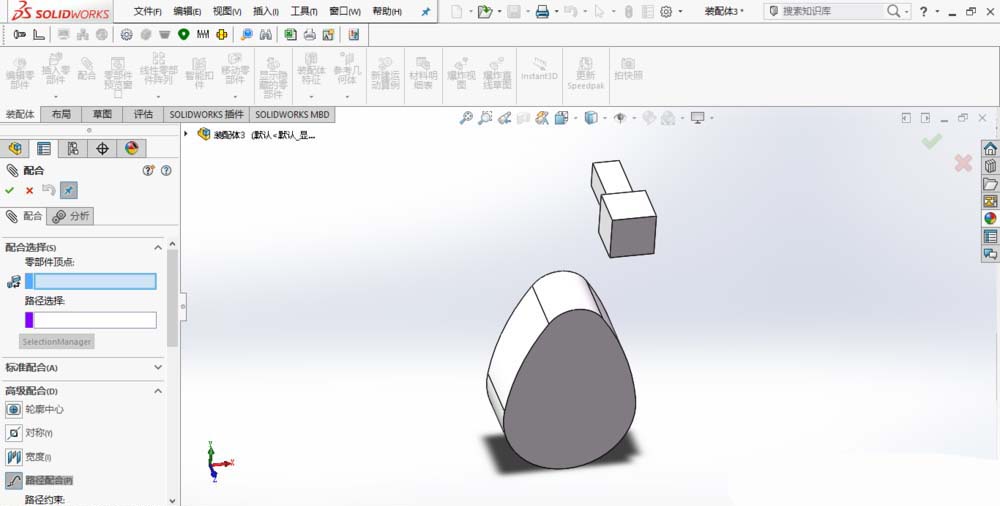 2、单击配合命令,展开高级配合,选择“路径配合”。